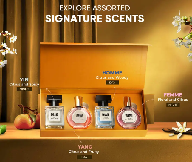 Engage Gift Set Luxury Unisex Travel Perfume Long Lasting, ITC Wedding Hamper (25mlx4) Eau de Parfum- 100ml (For Men & Women)